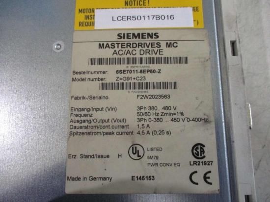 中古 SIEMENS MASTERDRIVES MC AC/AC DRIVE Z=G91+C23 6SE7011-5EP50-Z 4.5A(0.25s)