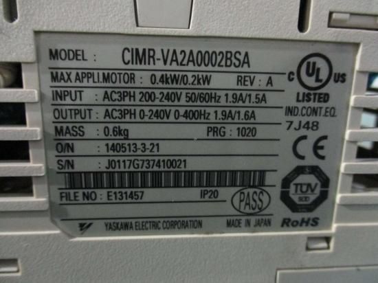 中古 YASKAWA V1000 Inverter CIMR-VA2A0002BSA インバーター 0.4KW/0.2KW AC3PH 200-240V 50/60Hz