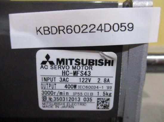 中古 MITSUBISHI AC SERVO MOTOR HC-MFS43 400W AC サーボモータ