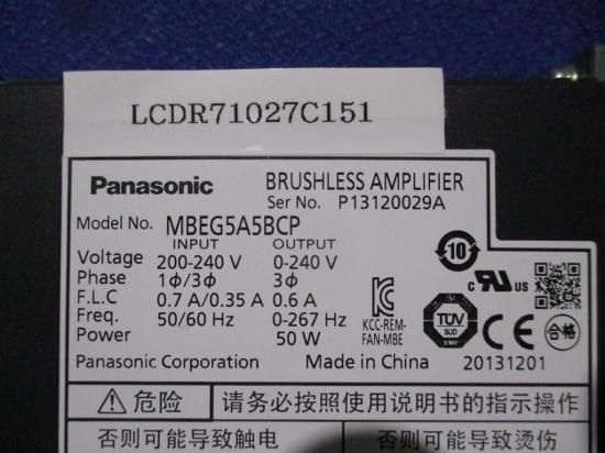 中古 Panasonic MBEG5A5BCP ブラシレスモータ アンプ 単相/三相200V 50W